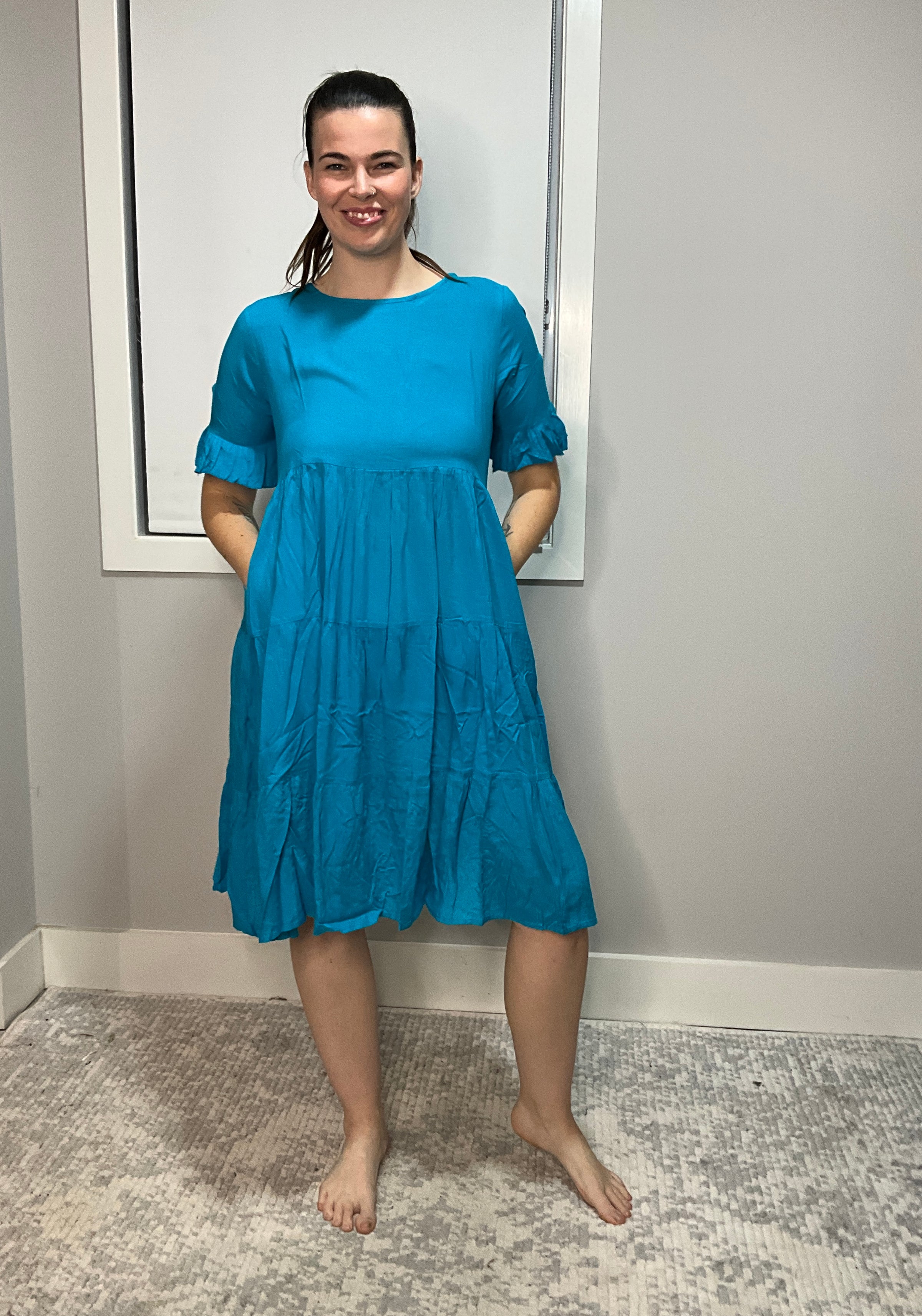 Tiered dress with ruffled hemline